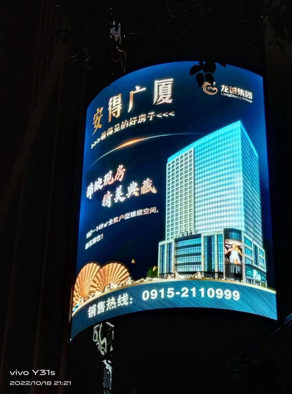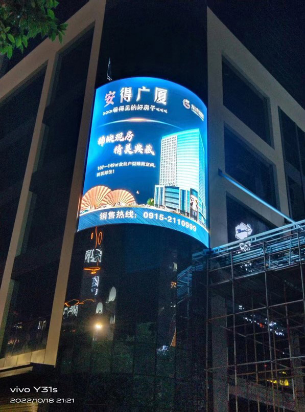 项目名称:强力巨彩户外全彩LED屏安装项目 项目型号:强力巨彩户外全彩Q5E 项目尺寸:6.95米*8.19米=56.92平方米 项目地址:陕西省安康市汉滨区大桥路6-7号国贸大酒店
